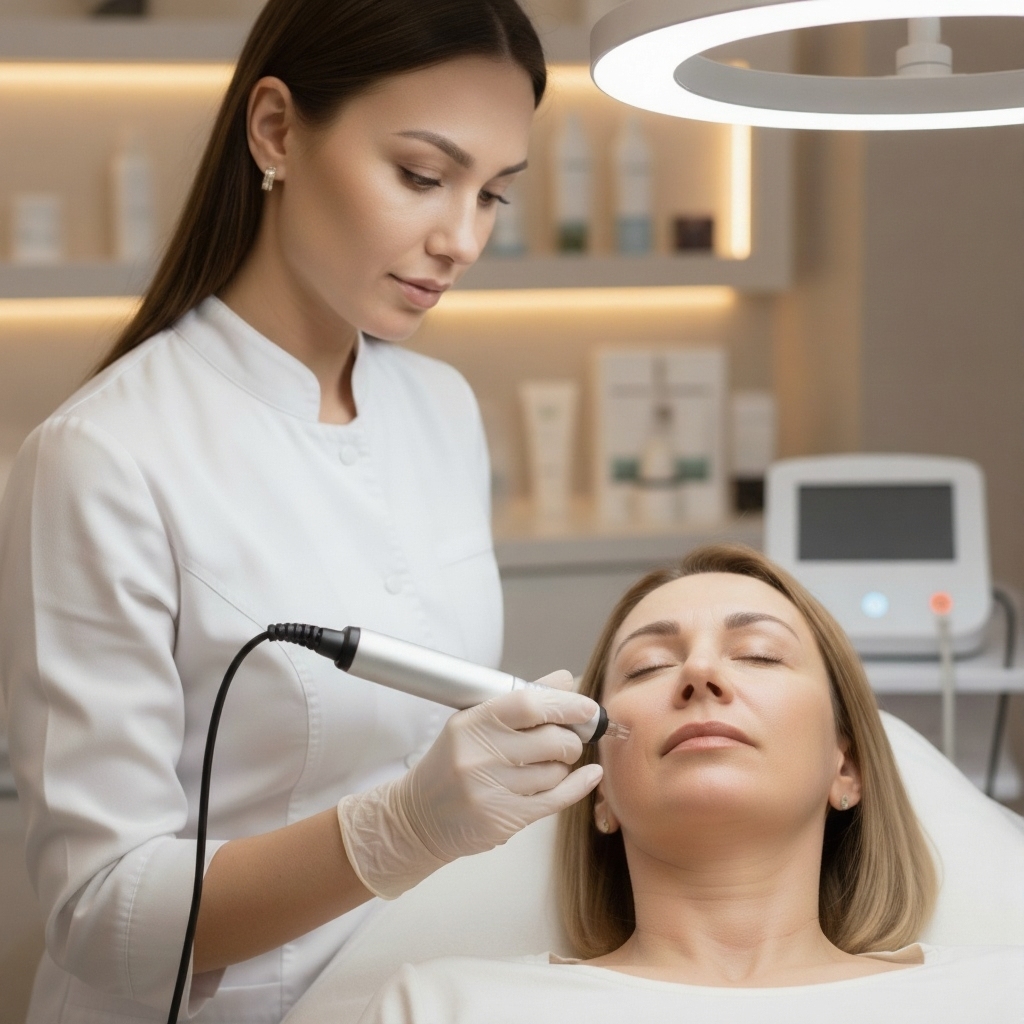 Small, sterile needles create tiny wounds in the skin, which stimulates the body’s natural healing process to create more collagen and elastin.