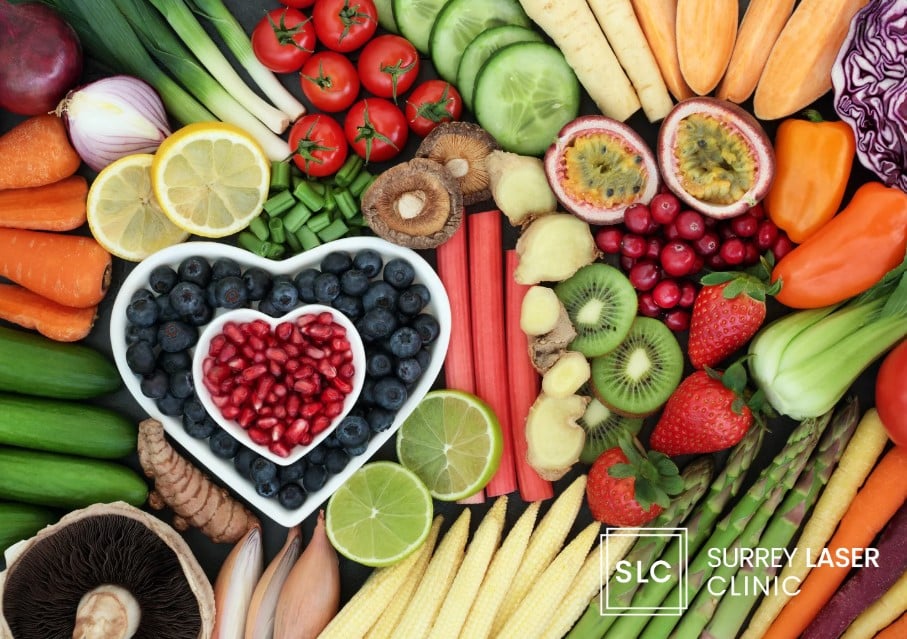 - Water – Staying well – hydrated keeps the skin plump and reduces the appearance of fine lines. Aim for at least 1.5 to 2 litres of water daily.